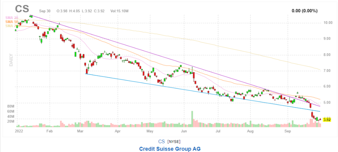 Year-to-date (YTD), the shares collapsed by 60.48%, with both negative short-term and long-term trends. CS is one of the lesser-performing stocks in the Capital Markets industry, where 86% of 203 stocks in the same industry do better.