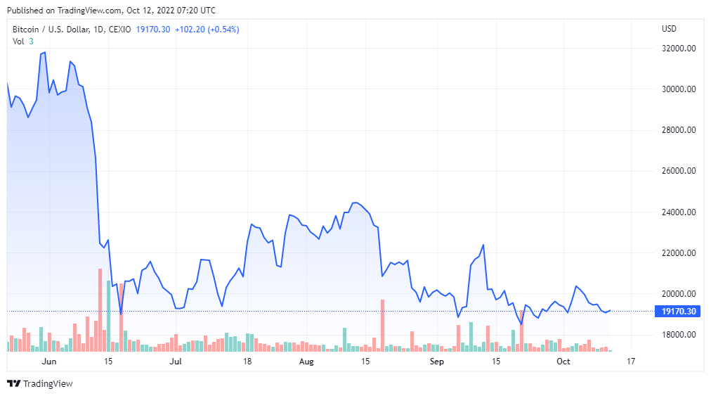 BTC price chart for 10/12/2022 on Cexio | Source: BTC/USD on TradingView.com