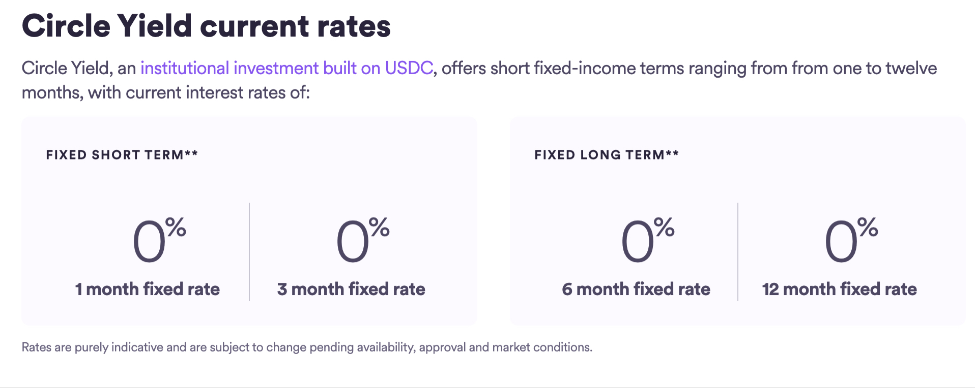Circle listed 0.25% annual percentage yield (APY) on its yield product on Tuesday, per an internet archive. Today, that figure has been reduced to 0%. Blockworks has reached out for comment.