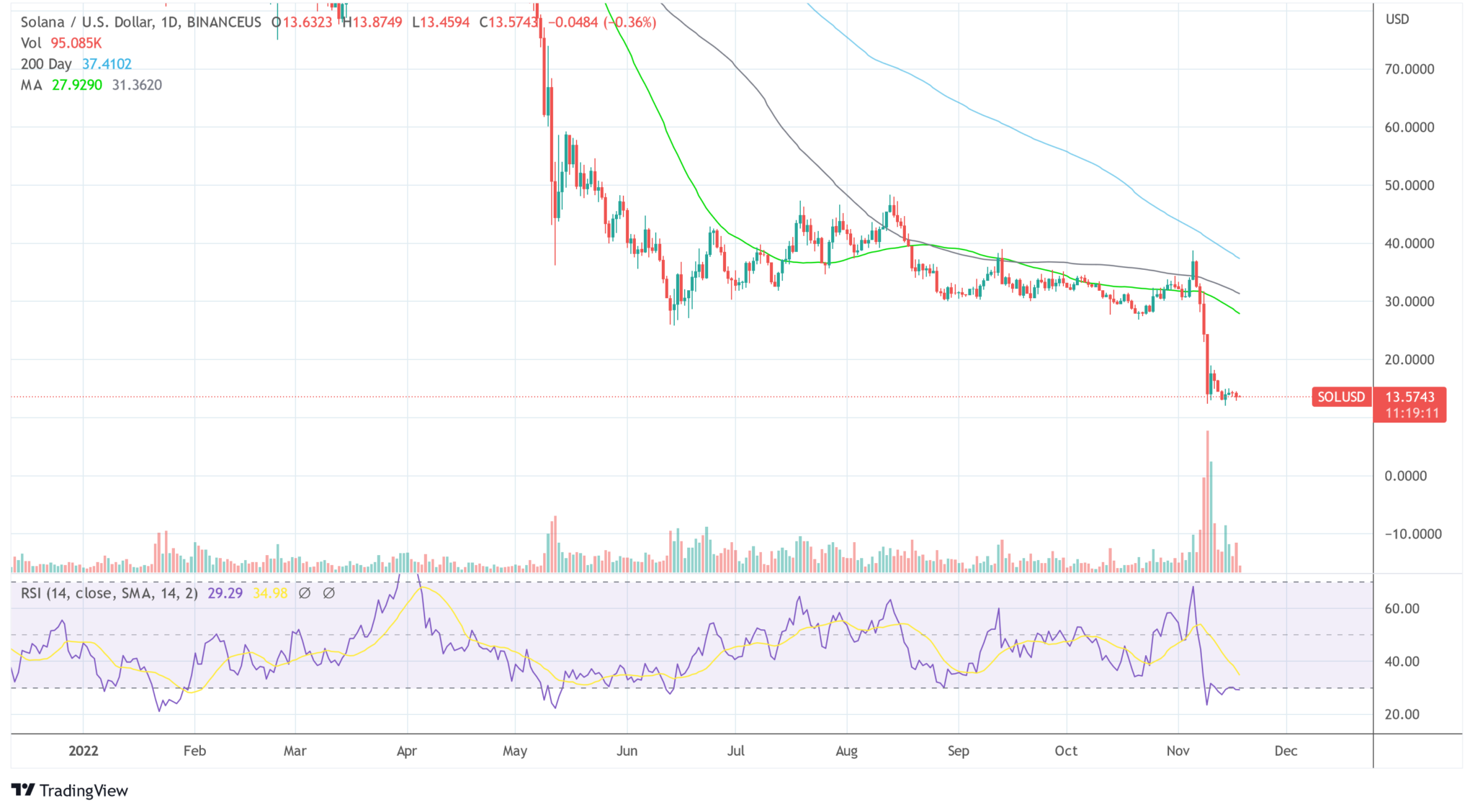 On November 05, SOL was still trading at a price of $38.71 on Binance before the steep crash to currently $13.53 took place.