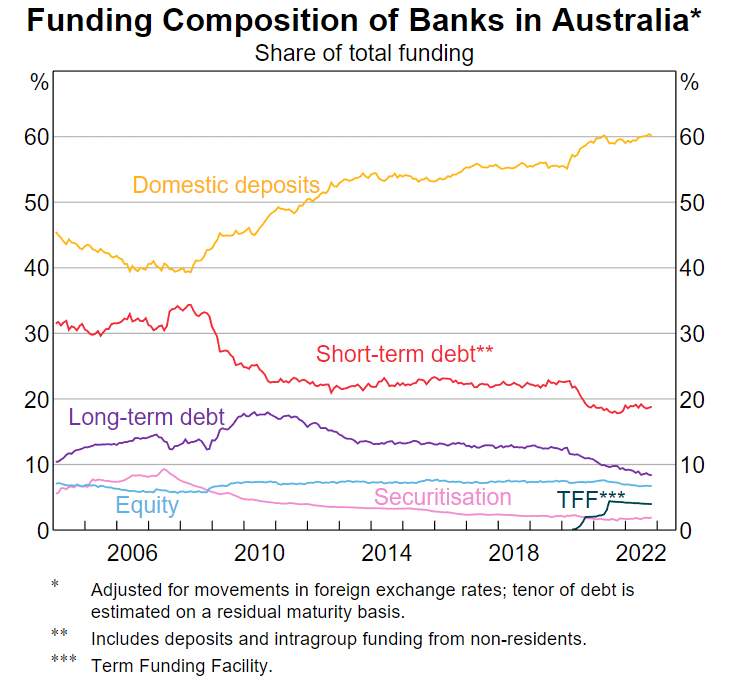 For example, with deposits of Australian residents such as savings accounts now making up over 60% of total funding for their banks, enough Australians choosing a CBDC over the Australian dollar could result in banks not having sufficient capital to lend to consumers, which in turn would make it harder for the RBA to transmit monetary policy, he said.