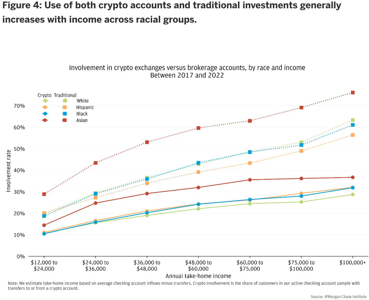 Racial statistics also proved that the amount transferred into a crypto-related account increased as the users’ income increased, regardless of race.