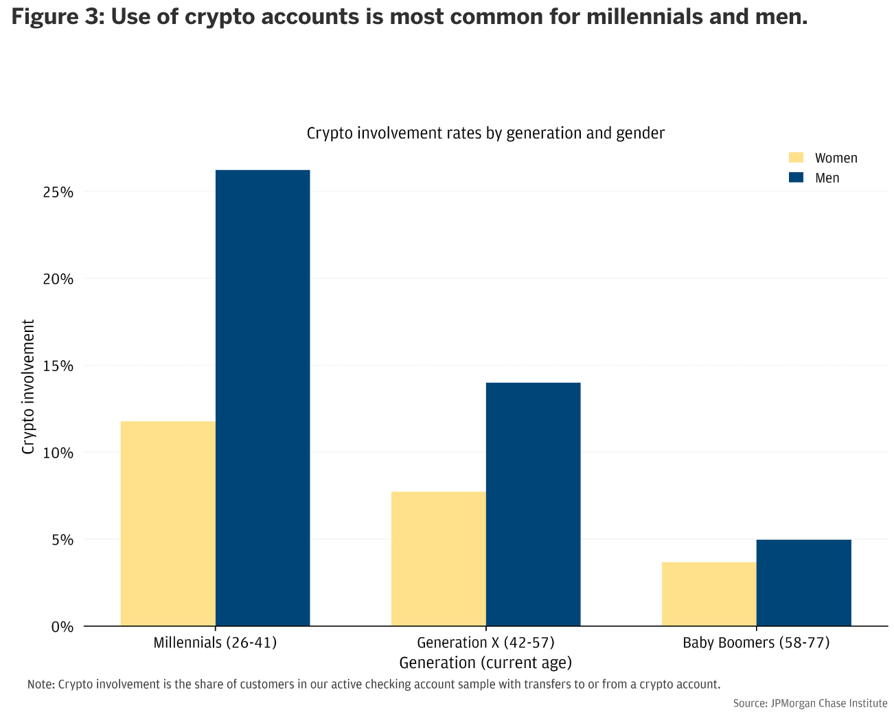 JP Morgan’s recent report revealed that almost 15% of individuals in the U.S. have issued transfers into crypto accounts, according to numbers from mid-2022. The detailed demographic data also indicates that Men, Asians, and higher-income youth have the highest crypto adoption in the country.