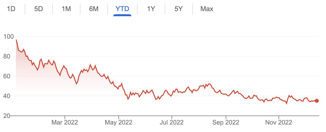 Ark Invest’s popular ETF, which is known as a big holder of companies like Tesla and Zoom, as well as bitcoin (BTC), has had a bad year in 2022. Year-to-date, ARKK is down 64%, as many of the fund’s largest holdings have plummeted in price.