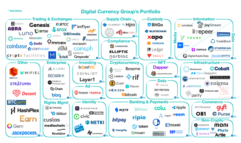 CoinDesk is the media and research division of DCG, notable for hosting the largest blockchain conferences, such as Consensus. DCG’s venture in market intelligence, mining, and staking is represented by Foundry. For a crypto exchange/wallet, DCG founded Luno, alongside TradeBlock as an API for end-to-end institutional trading.