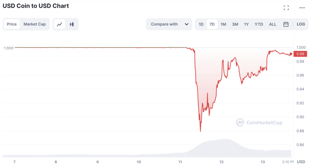Amid the widespread panic and redemptions, some exchanges had to suspend their USDC conversion services. Binance stopped the automatic conversion of USDC to BUSD, while Coinbase temporarily halted the conversion of USDC to USD. Similarly, Robinhood suspended both USDC deposits and trading. USDC’s value depegged from the US dollar, plunging to a record low of $0.87 on March 13.