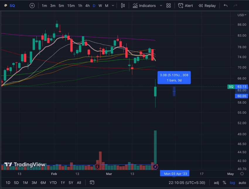 Hindenburg Research has a short position on the shares of Block Inc. Following the report, the stock opened a gap down by 18% from $72.66 to $60. However, as of writing, it is trading at $63.05, around 5% up from the opening price.