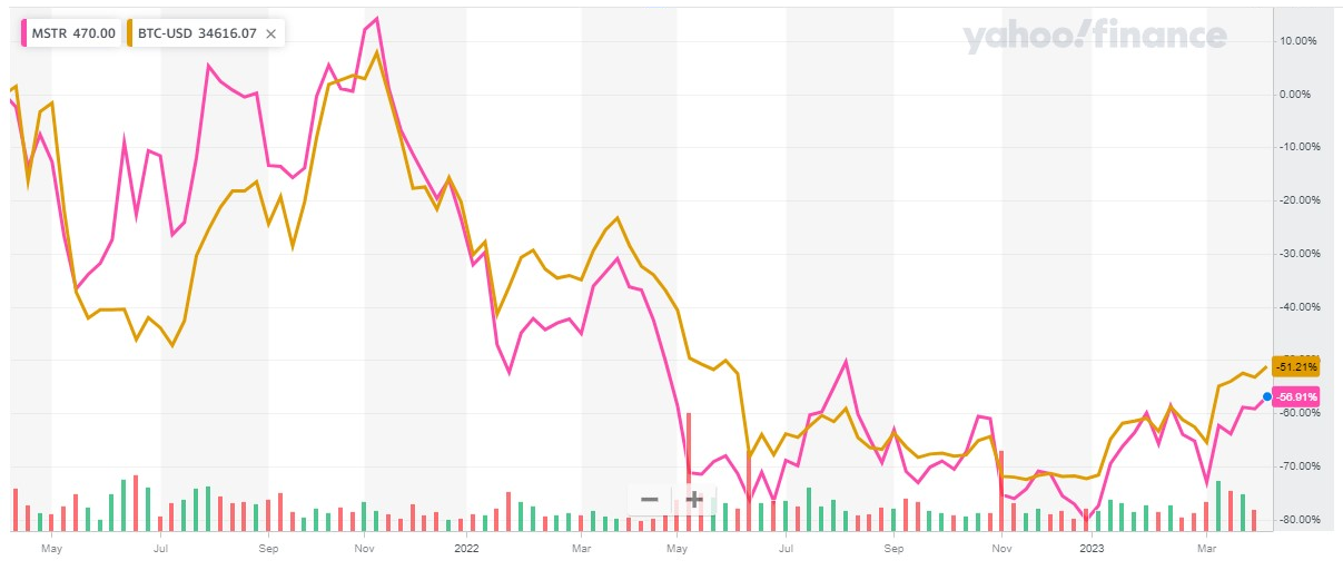 Plus, bitcoin has been on the upswing for the last three to four months, Yang said, making it a no-brainer for traders to hop on MicroStrategy shares and other bitcoin exposed assets.