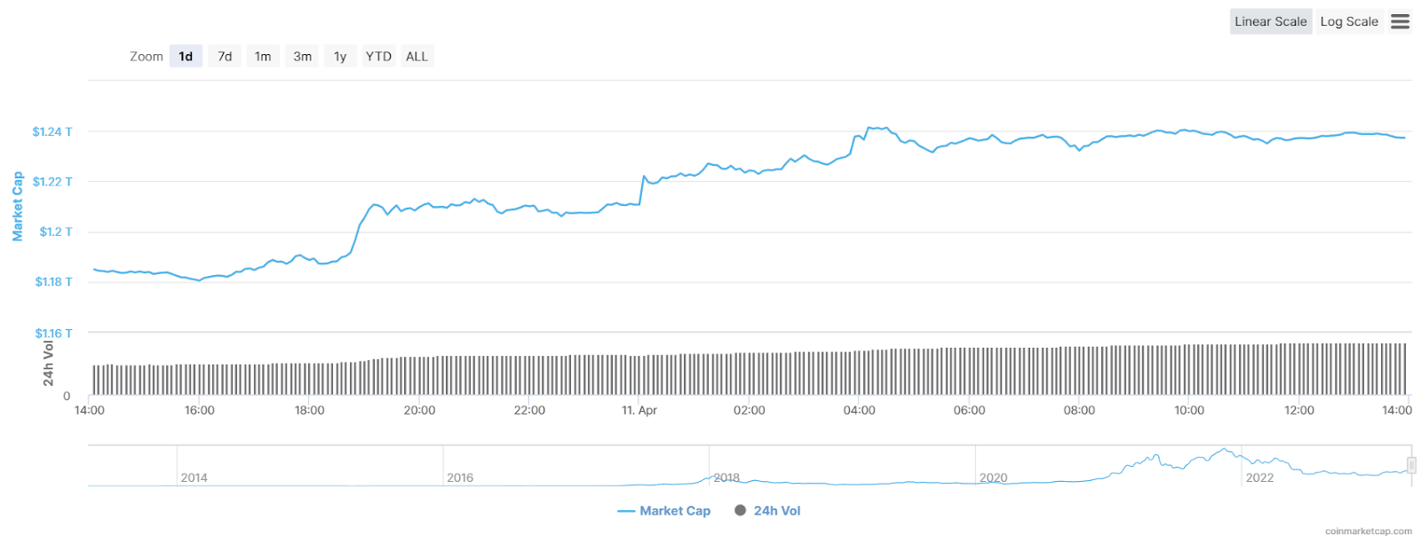 As it happens, the total crypto market cap increased from $1.19 trillion to $1.24 trillion at press time, which means that it has added more than $52 billion or 4.43% in just 24 hours, as per the latest data accessed from the crypto tracking platform CoinMarketCap on April 11.