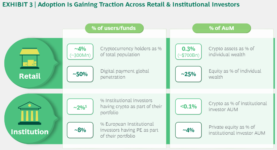 HashKey pointed to a 2022 study from consultancy firm Boston Consulting Group (BSG) which found 0.3% of individual wealth is invested in crypto compared to the 25% invested in equities.
