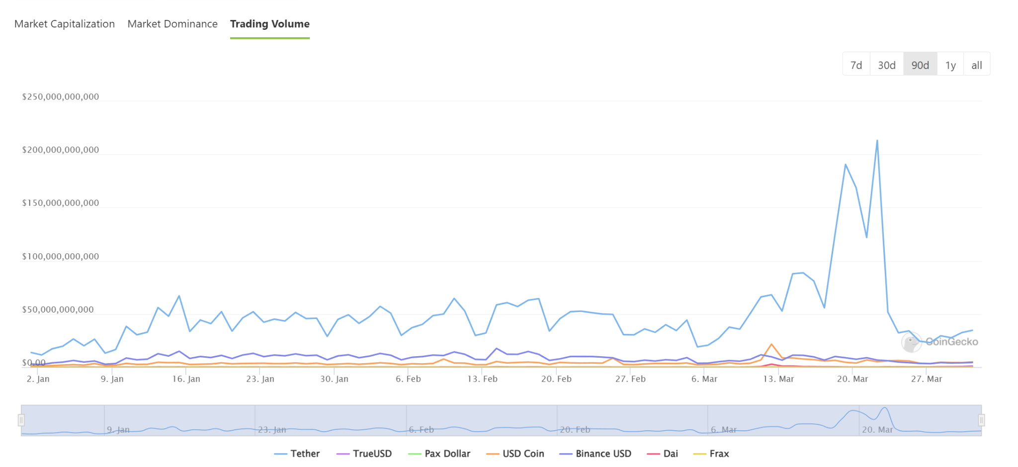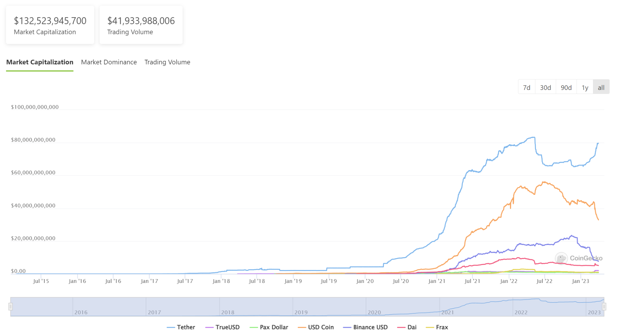 Stablecoins can also be traded globally, giving participants access to new global markets. As of March 31, 2023, the total trading volume for stablecoins has globally totaled over $22bn USD. That is a large increase from the $364 million USD in trading volume of stablecoins toward the end of 2018.