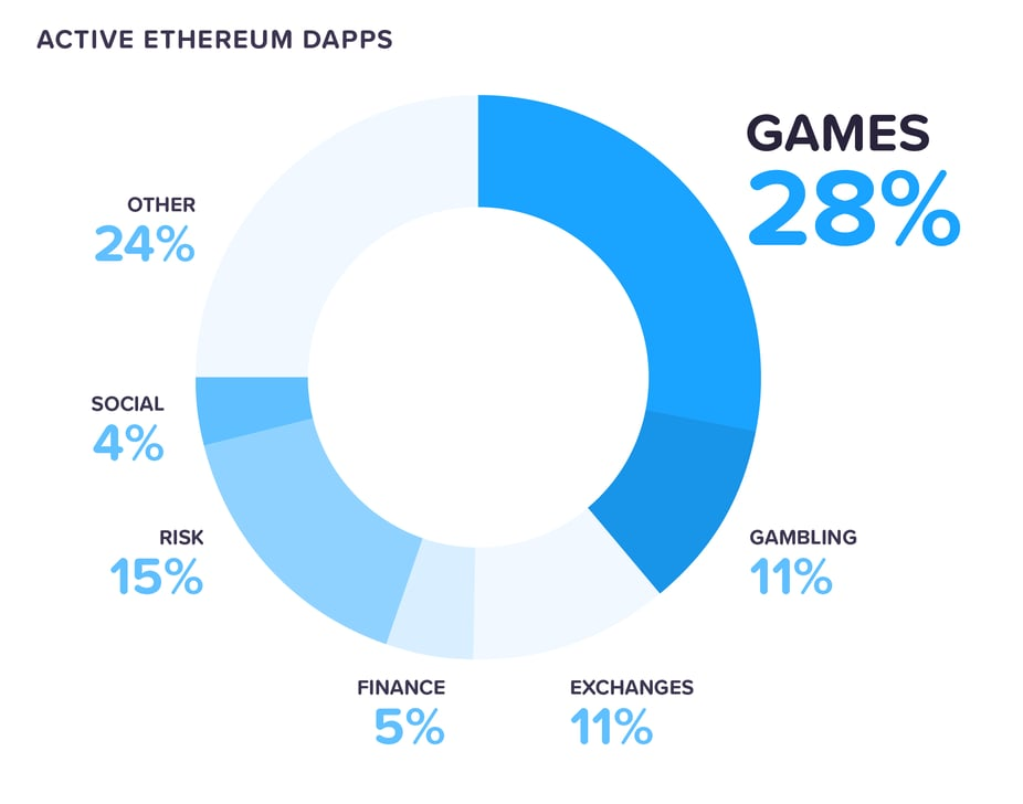 Gaming dapps account for nearly 30% of decentralized applications on the market. In effect, gaming is another industry ripe for stablecoin adoption.