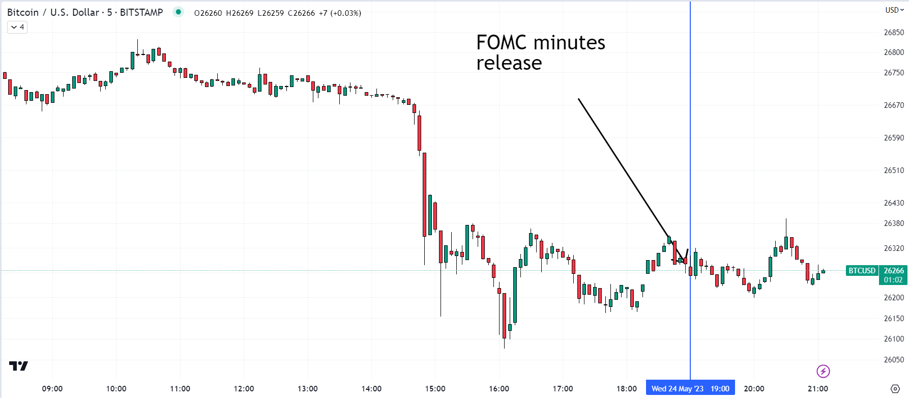 Cryptocurrency, forex, US equity and US bond markets didn’t see much of a reaction to the minutes, the tone of which were broadly as expected.