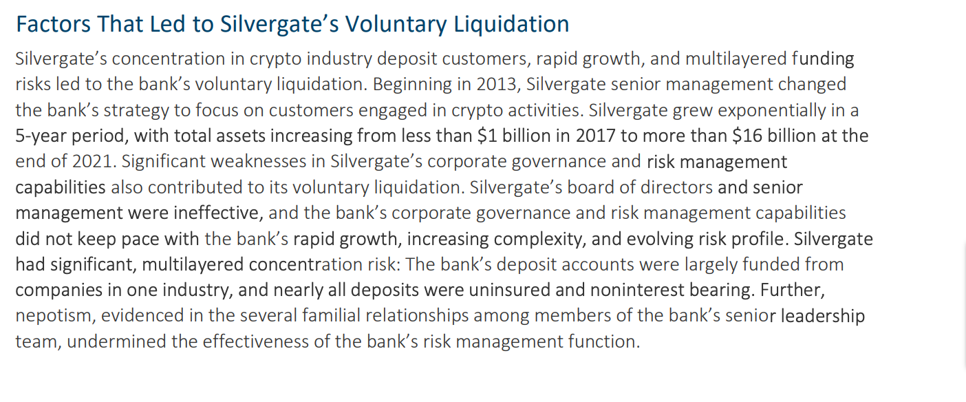 United States Federal Reserve inspectors concluded that the collapse of Silvergate Bank, known for its crypto-friendly approach, was a result of excessive reliance on volatile crypto deposits and poorly executed management practices. The findings were part of an executive summary released on September 27, outlining the details of the bank's downfall.