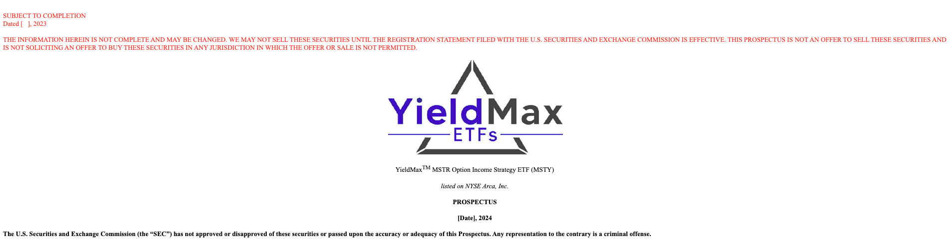 According to a Dec. 7 filing with the United States Securities and Exchange Commission (SEC), YieldMax has officially applied to launch its Option Income Strategy ETF based on shares in MicroStrategy, slated for release sometime in 2024.
