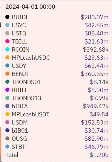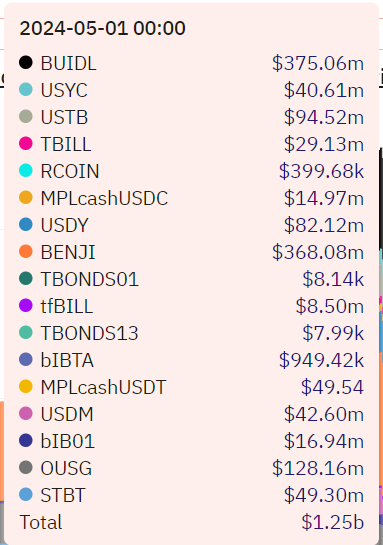 The total AUM for tokenized government securities has seen significant growth in last one month of $50 Million to $1.25 Billion. A percentage growth of 4% in a month.