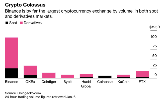 Binance is the largest cryptocurrency exchange in the world, with daily cryptocurrency trade volumes exceeding $100 billion on the majority of days in 2021. Binance is by far the largest crypto exchange in terms of both spot and futures markets.