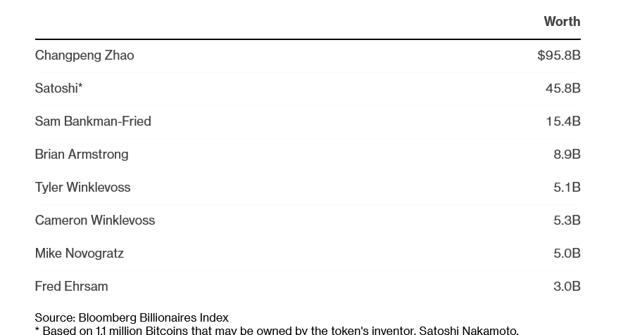 The Crypto Richest. Source: Bloomberg