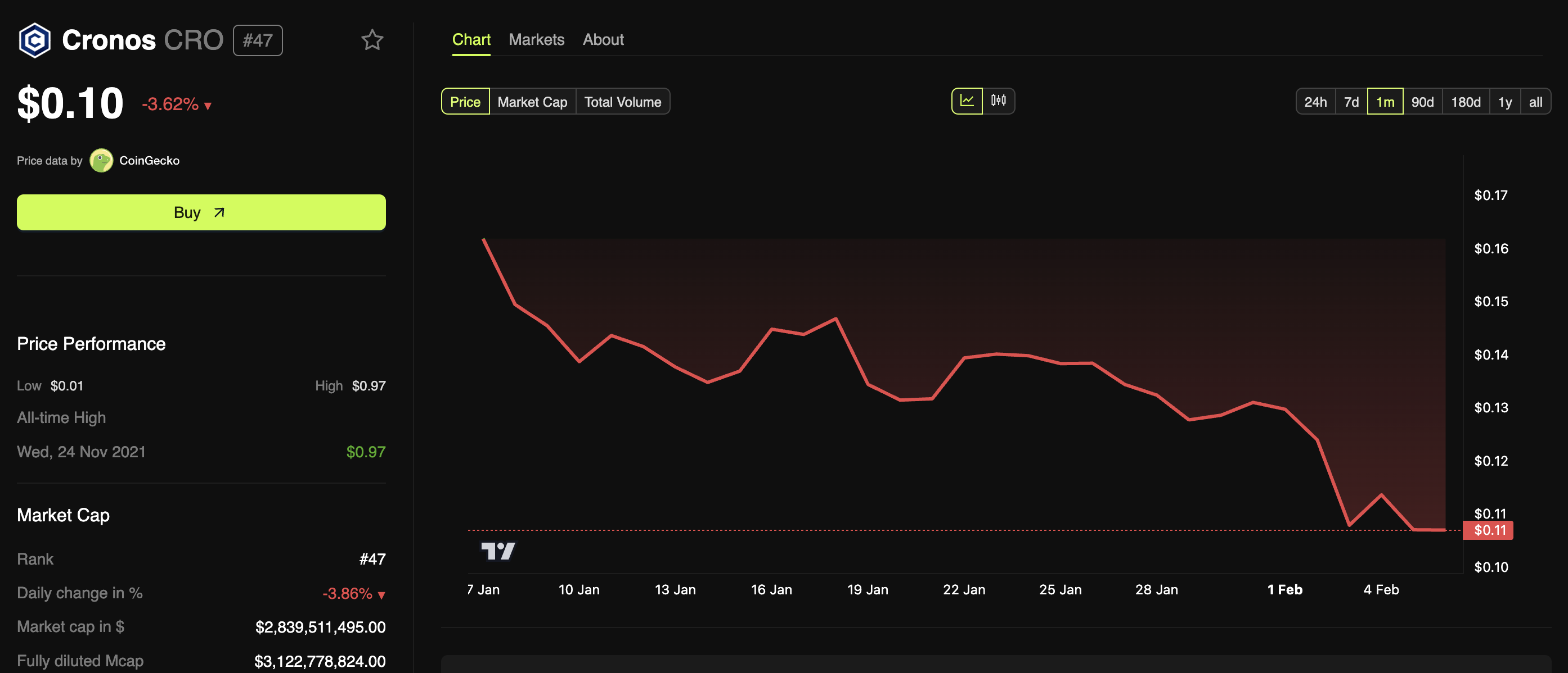 This regulatory achievement aligned with Crypto.com’s broader expansion strategy. Despite these developments, the price of CRO has been in a sustained downtrend since early December.