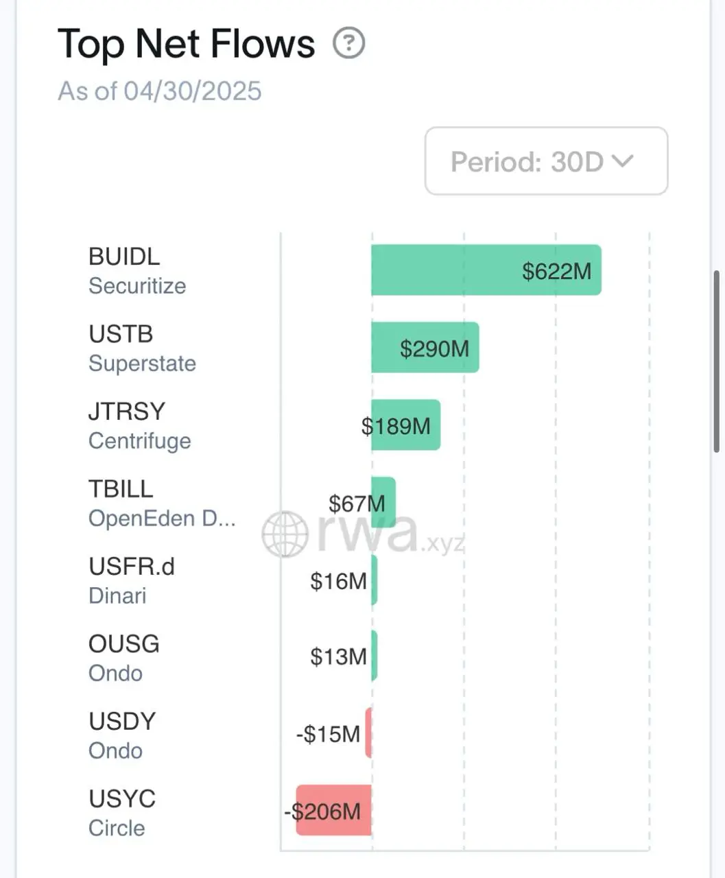 According to data from rwa.xyz, BUIDL, which is a product of Securitize and BlackRock, currently has $2.556 billion in assets under management (AUM) and has seen a net inflow of more than $600 million in the last 30 days. With only 70 holders, its performance captures the solid interest in tokenized products, especially from institutional investors in the decentralized finance sector.