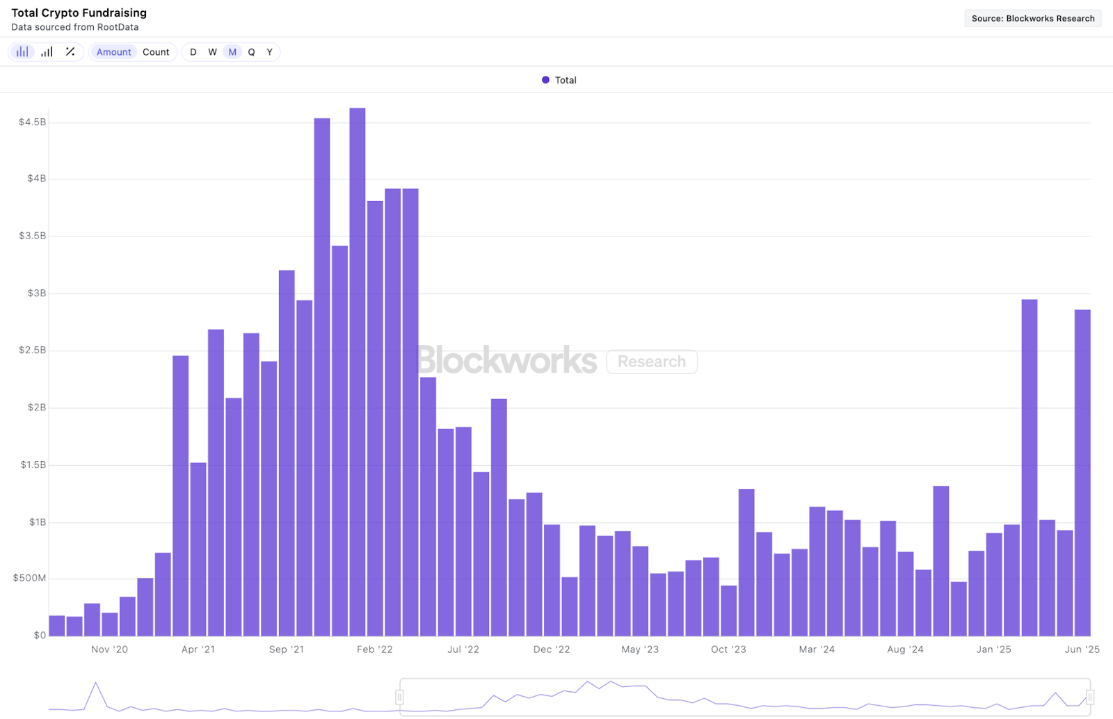 According to Blockworks Research data, there was roughly $2.8 billion raised last month.