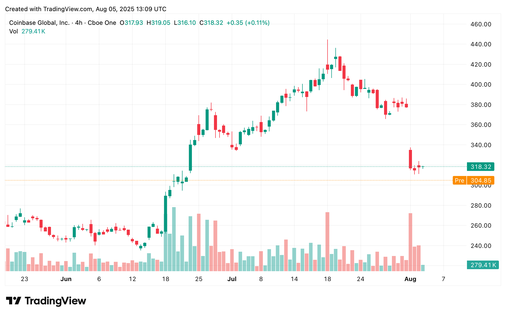 Coinbase’s Nasdaq-listed stock, COIN, closed Monday at $318.17, up about 1% for the day. While the share price recently notched an all-time high, it has slipped 16.9% over the past week and more than 9% since last month. Still, year-to-date, COIN is up nearly 25% against the U.S. dollar. On Tuesday, the company said part of the net proceeds from the private sale will fund the capped call transactions.