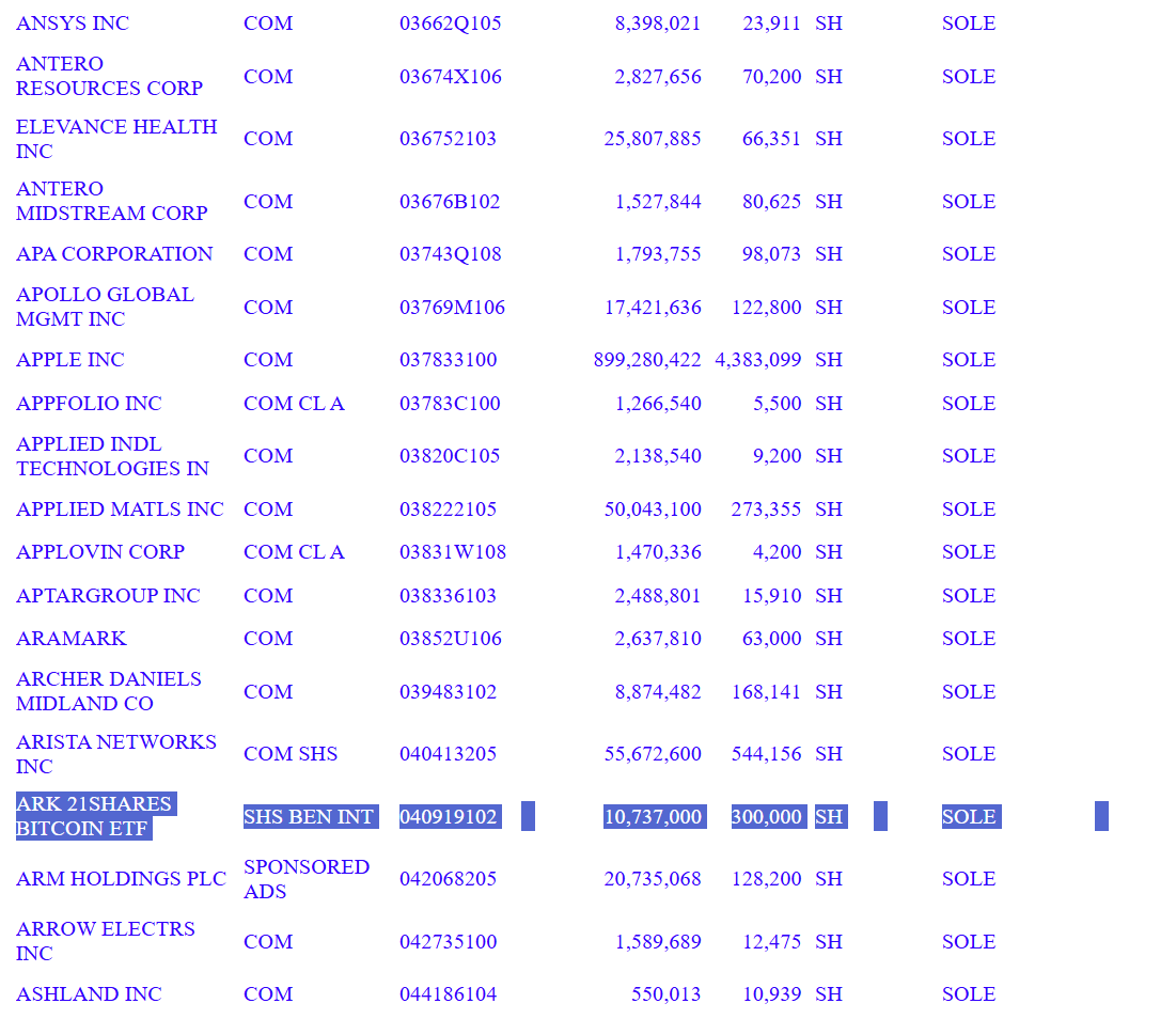 With shares currently trading at $37.72, the value of the pension fund’s ARKB holdings would now stand at approximately $11.3 million, assuming no shares have been sold since the last disclosure.
