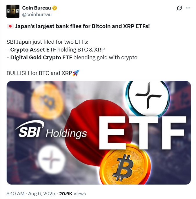 Notably, the timing of SBI’s filing is pertinent as talk around crypto ETFs, especially XRP-related ones, is growing worldwide.