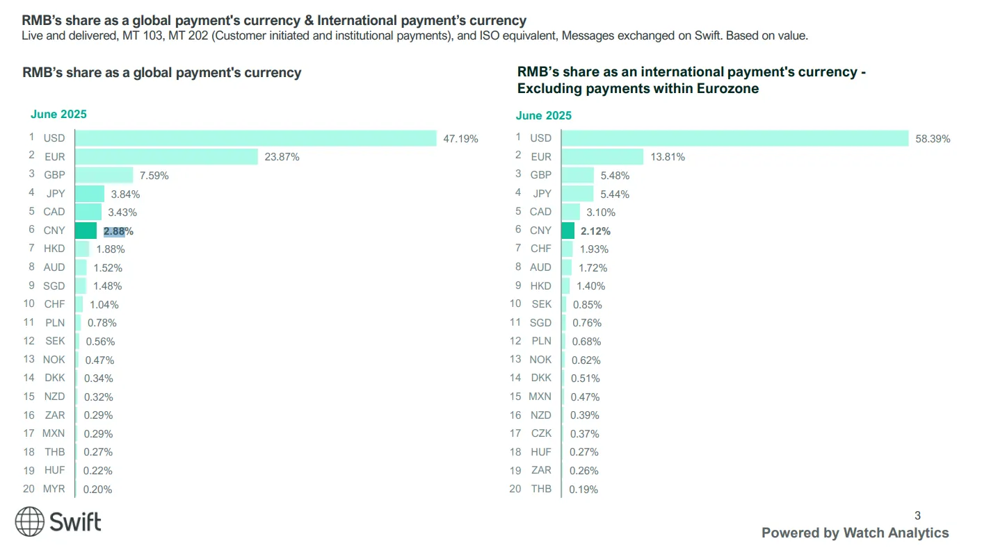 The US dollar maintained a 48.46% market share despite Chinese efforts to promote currency internationalization through systems like the Cross-Border Interbank Payment System.