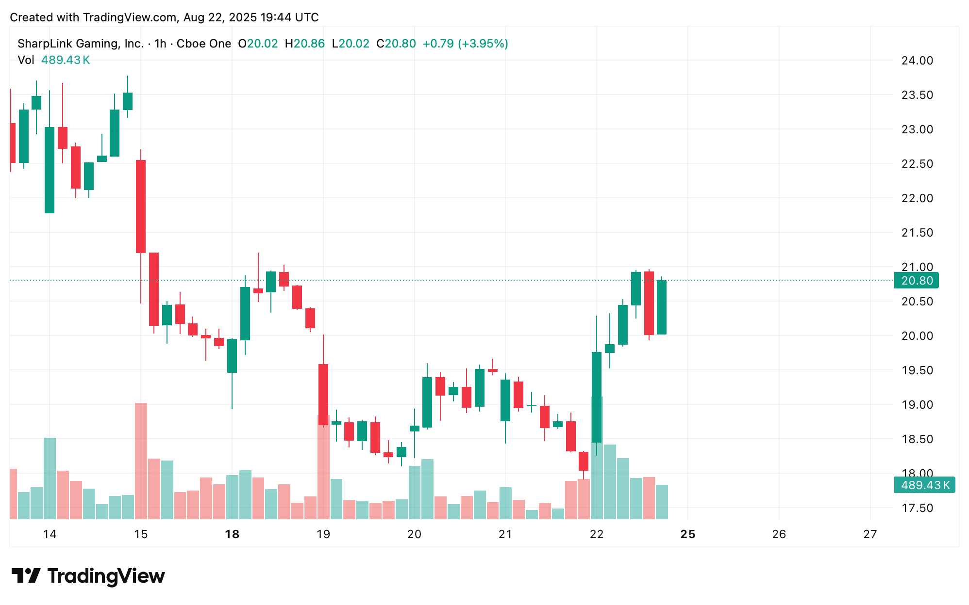 Sharplink stressed the company is not obligated to repurchase any specific number of shares and may suspend or discontinue the program at any time. At press time, near 4 p.m. Eastern time, SBET is trading for $20.90 per share. Sharplink is the second-largest ETH treasury company that’s publicly traded.