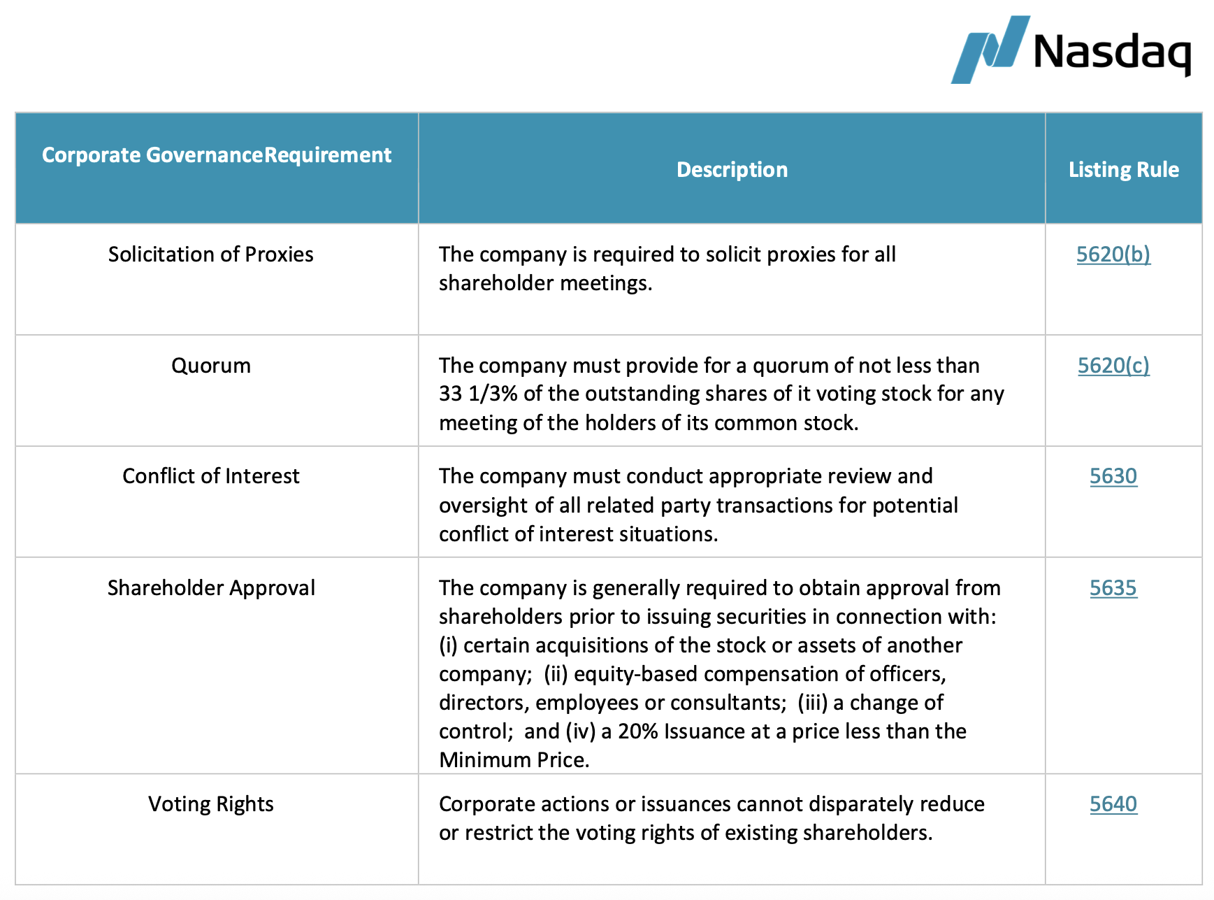 Nasdaq rules generally require companies to seek shareholder approval before issuing new securities tied to major acquisitions, equity compensation, a change of control, or a sale representing 20% or more of shares below market price, according to the exchange’s listing center.