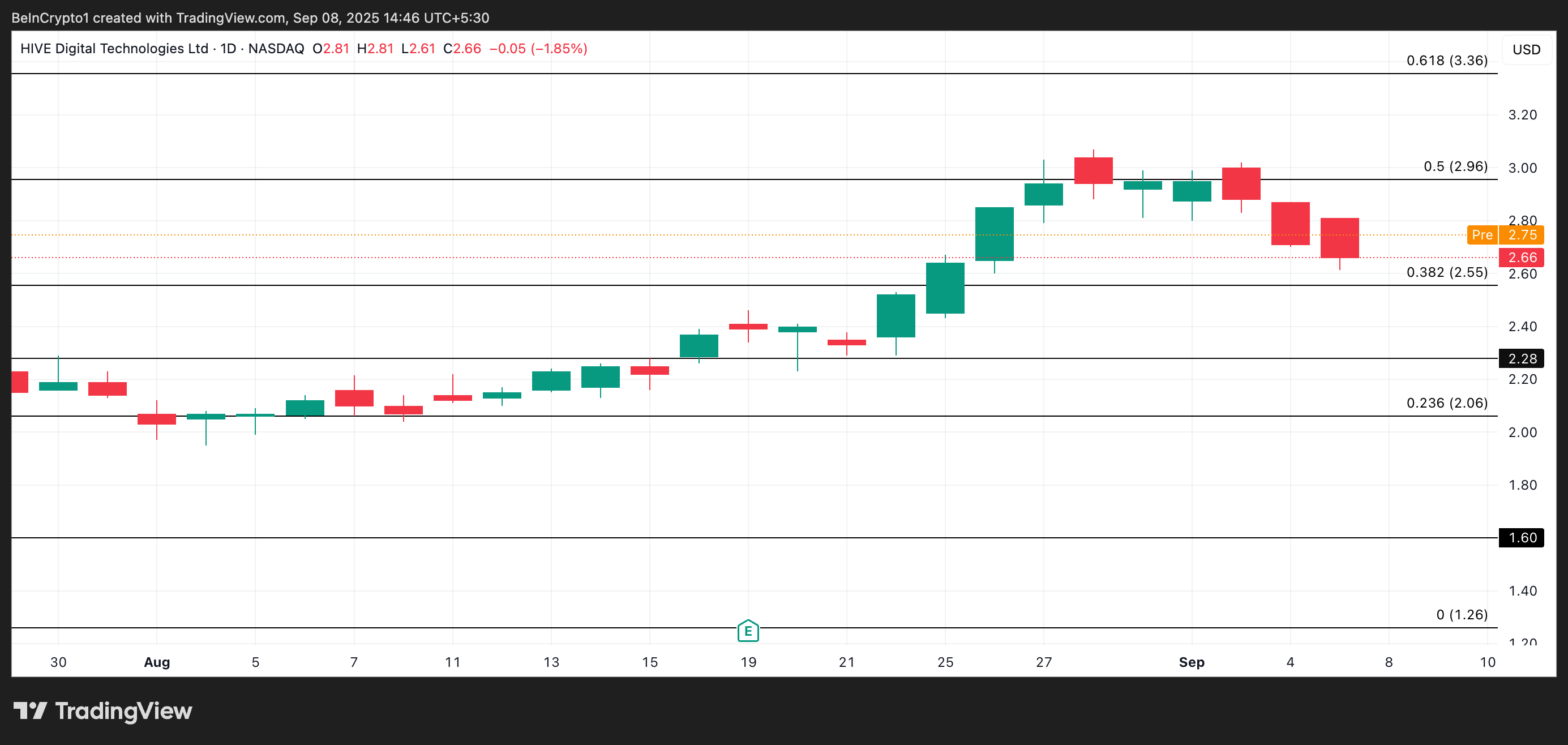 During pre-market trading today, HIVE is priced at $2.75. If demand for the stock climbs, HIVE could push toward $2.96.