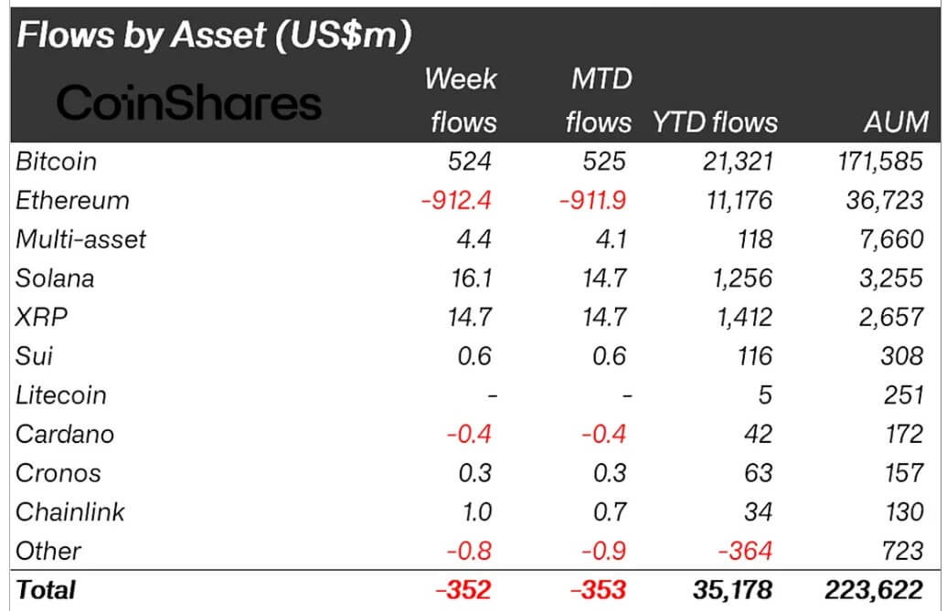 While Bitcoin products managed to pull in $524 million last week, the overall market picture was dominated by Ethereum’s struggles.