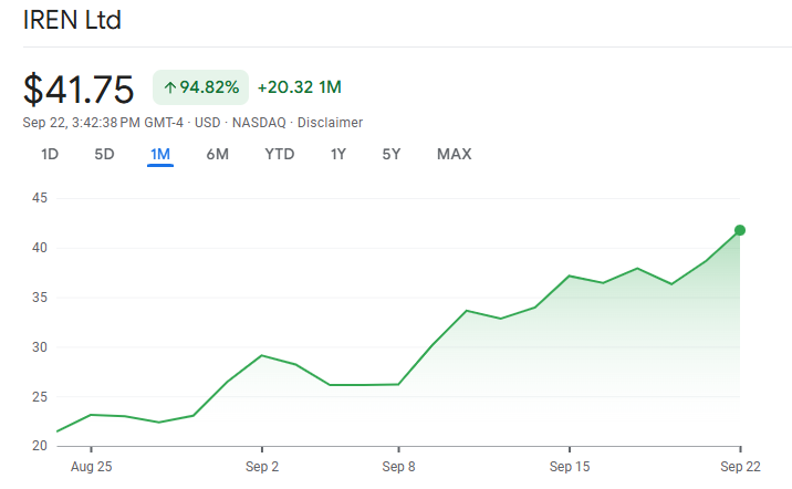 IREN has almost doubled over the past month, while CIFR has more than doubled during the same stretch.