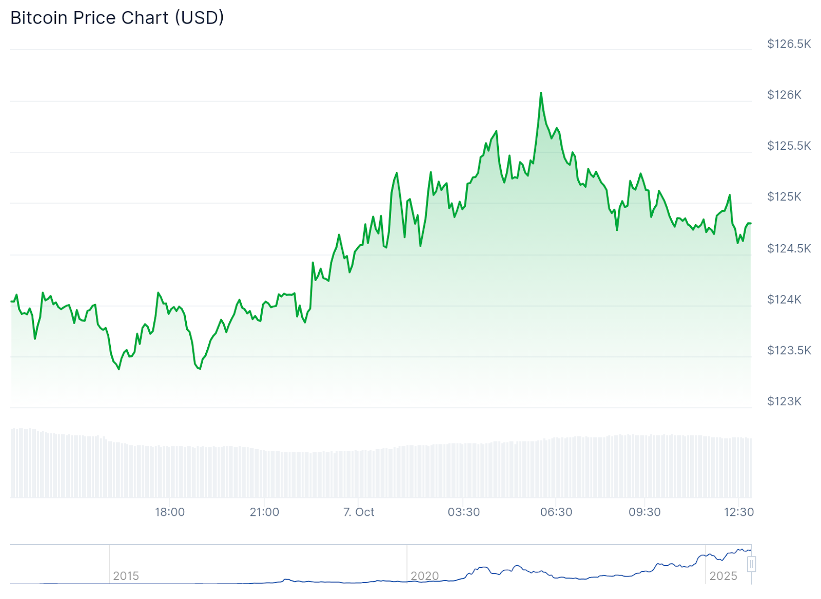 The gains come as Bitcoin rallied to a new all-time high of $126,080 on Monday, according to CoinGecko.
