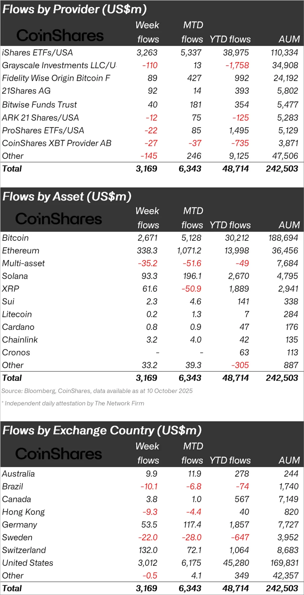 Cryptocurrency investment products saw $3.17 billion in inflows last week, and despite price corrections related to US-China tariff tensions, year-to-date inflows have reached a record $48.7 billion.
