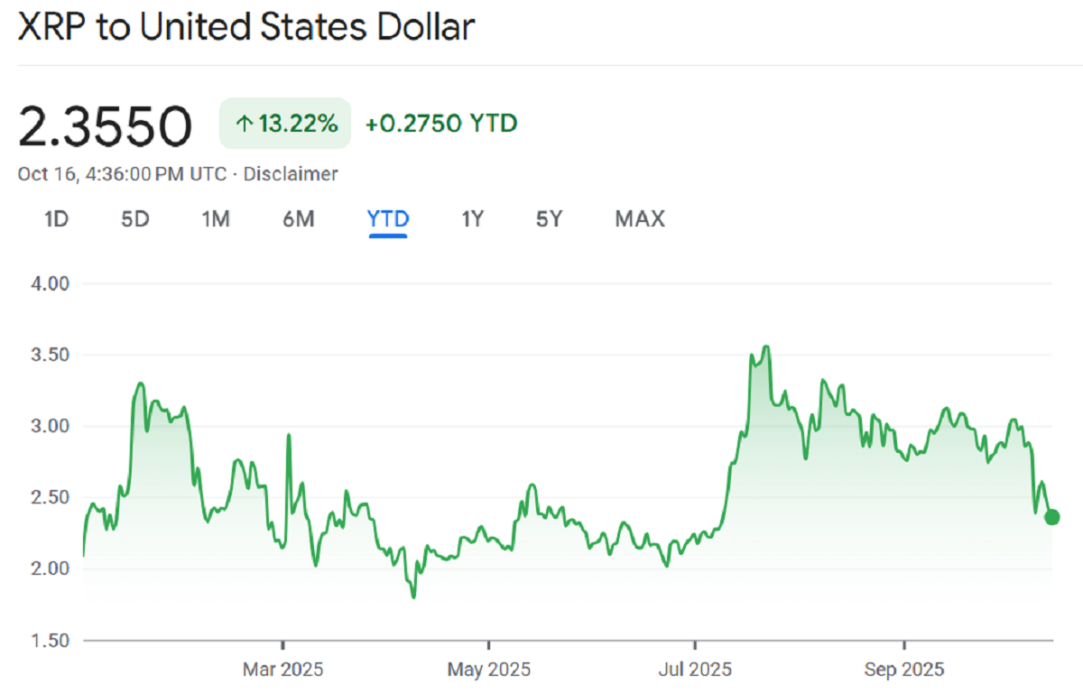 XRP retargets its 2025 status quo after peaking in July. Source: Google