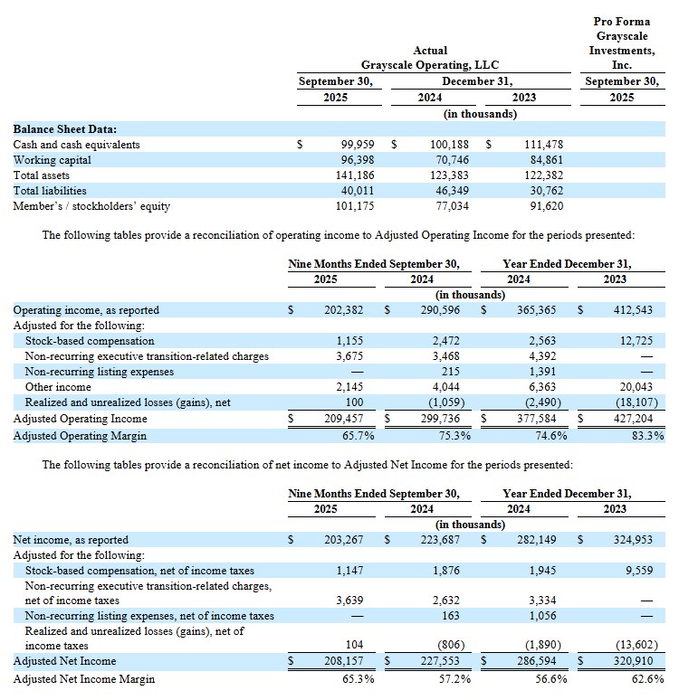 For the full year 2024, Grayscale generated $506.2 million in revenues and reported $282.1 million in net income alongside $365.4 million in operating income for that period.