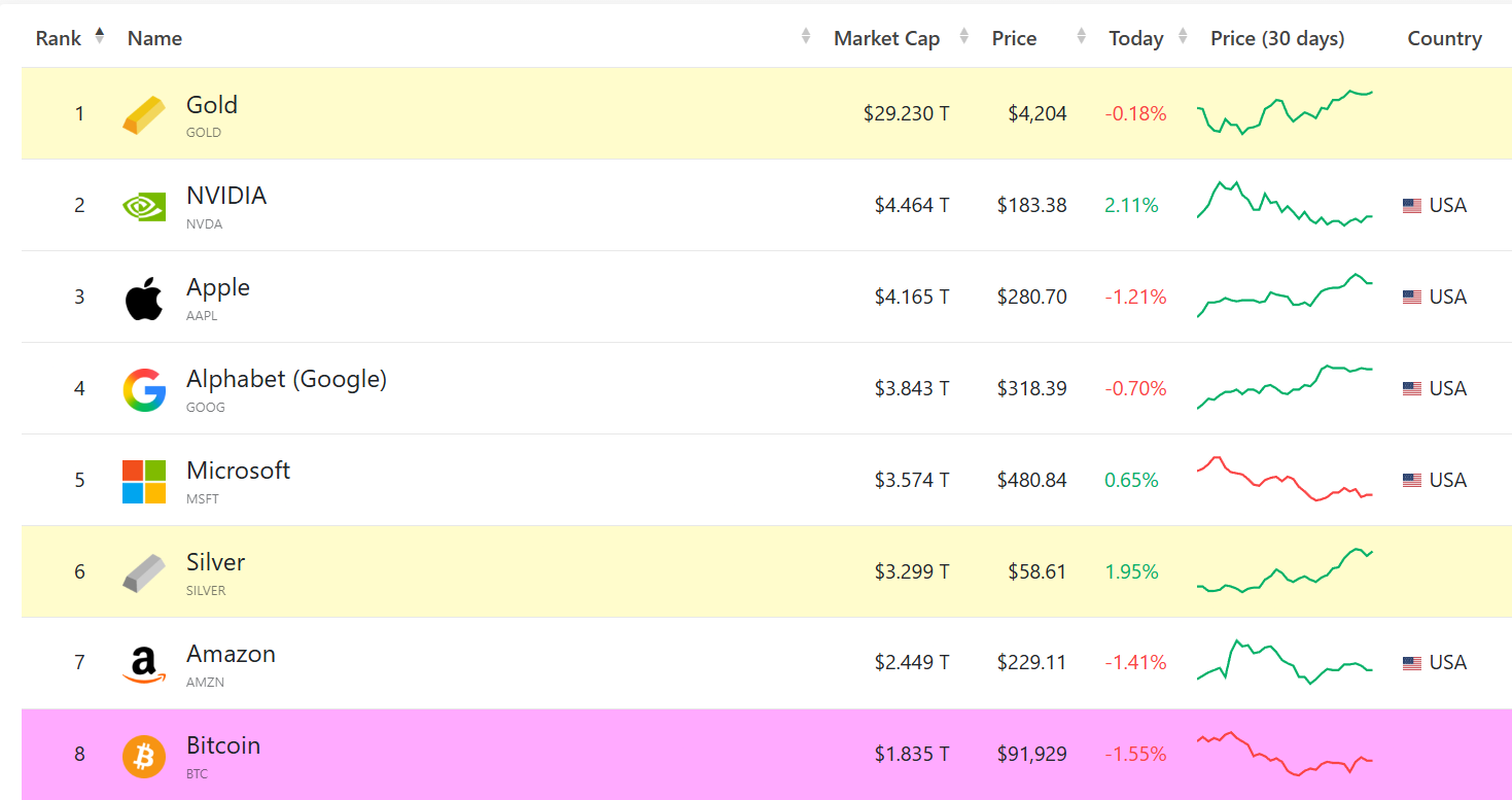 Still, Bitcoin’s price would need to grow nearly 16-fold to surpass the value of the world’s largest precious metal.
