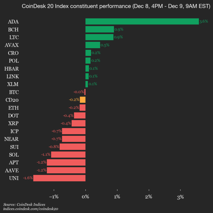 Leaders: ADA (+3.6%) and BCH (+0.9%).
