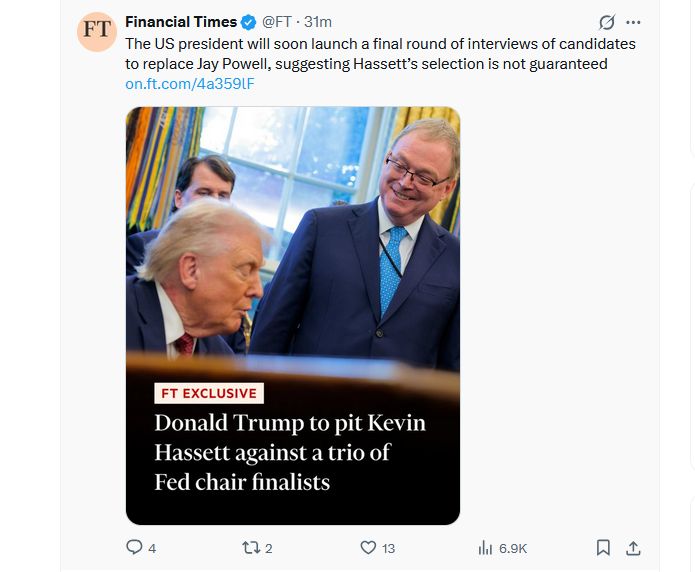 One of these is former Fed governor Kevin Warsh, whom Bessent is scheduled to meet with on Wednesday. Another is National Economic Council director Kevin Hassett, who is seen as the frontrunner for the role.
