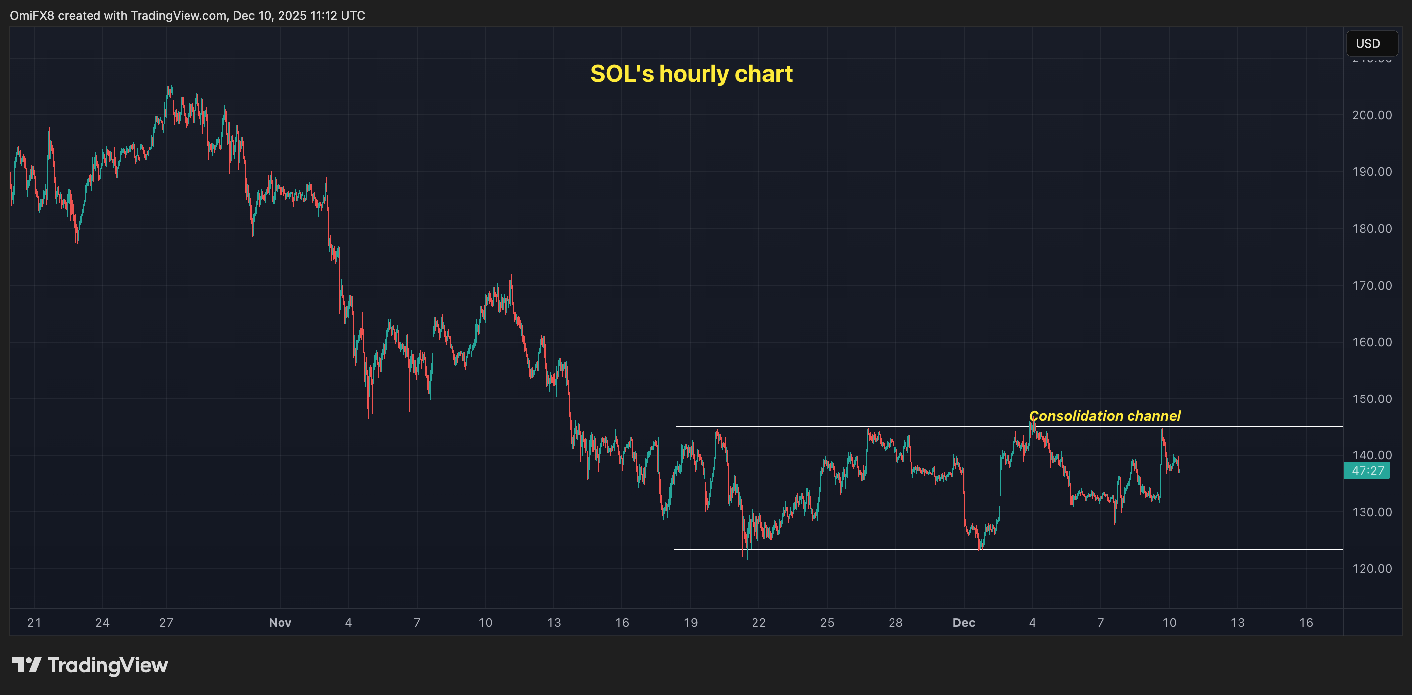 - Solana’s native token continues to trade in a sideways channel, with $145 as the upper boundary and $125 as the lower boundary.