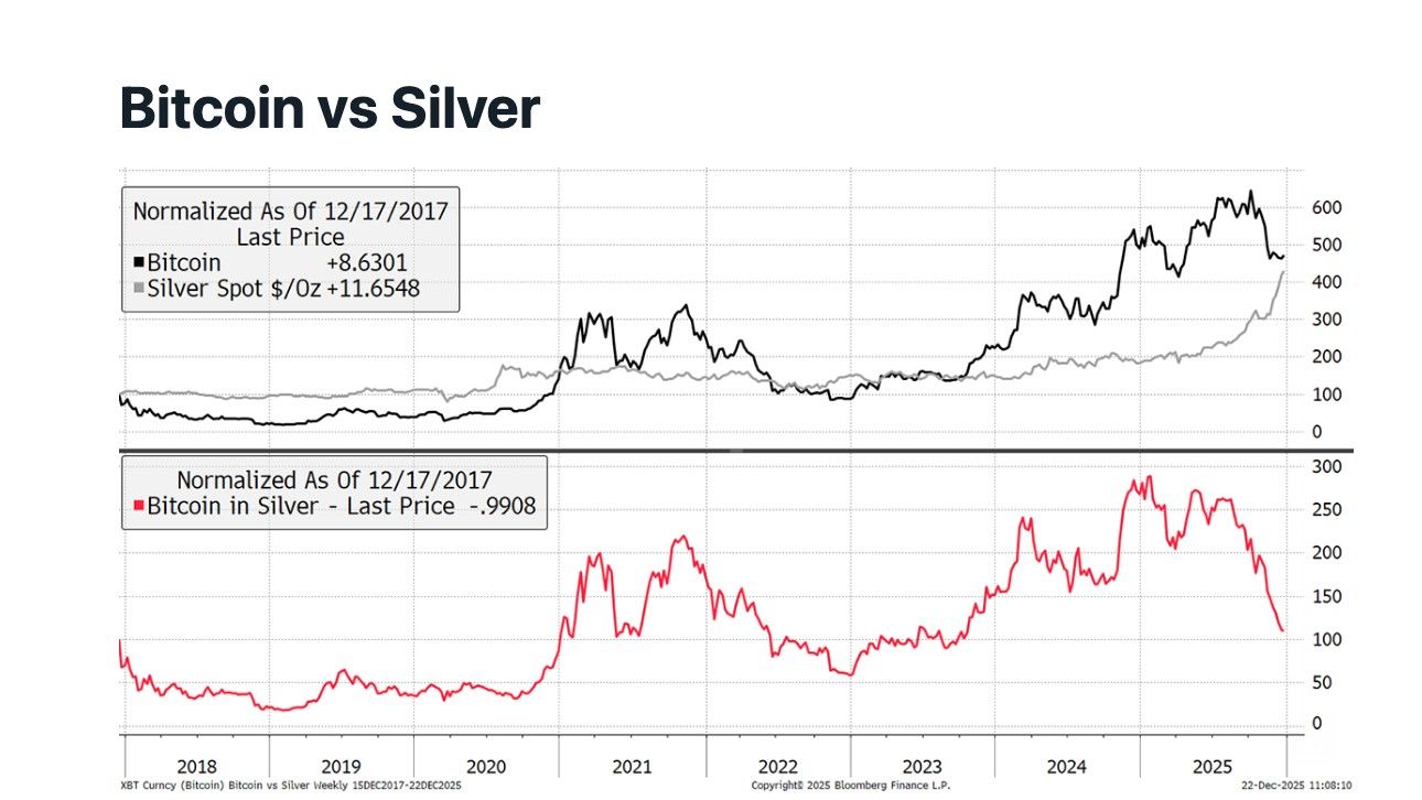 However, silver with its ongoing parabolic rally has now nearly matched BTC's return over the past eight years.