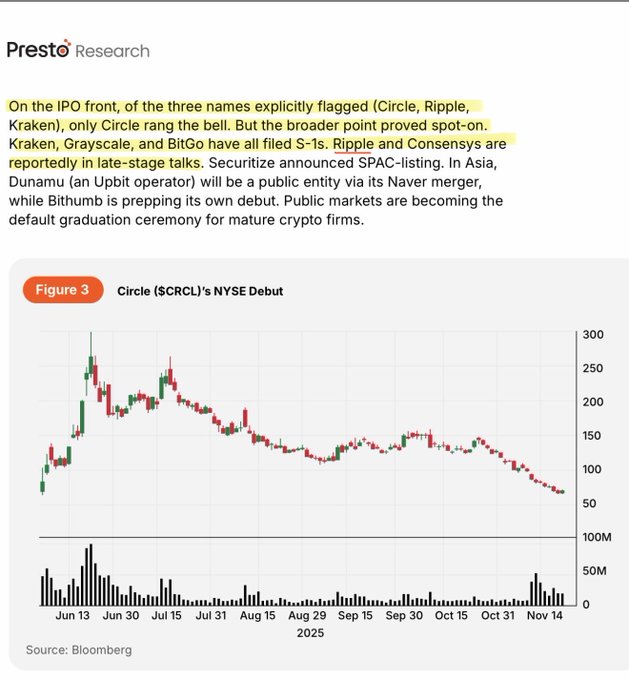 Images and excerpts from Presto Research have been cited as evidence that Ripple is being grouped alongside other crypto companies preparing to enter public markets, including Kraken, ConsenSys, and BitGo.