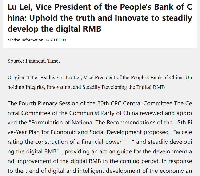The new CBDC framework will allow banks to treat the digital yuan as part of their asset-liability operations, Lu Lei, a deputy governor of the People’s Bank of China, wrote in a PBOC-affiliated China Financial News article, republished by Sina Finance on Monday.