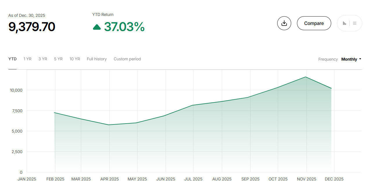 The 2025 performance also reflected the shift to overseas investment in US stocks, which make the biggest component of the index. Additionally, the flow into AI companies boosted some of the index stocks.