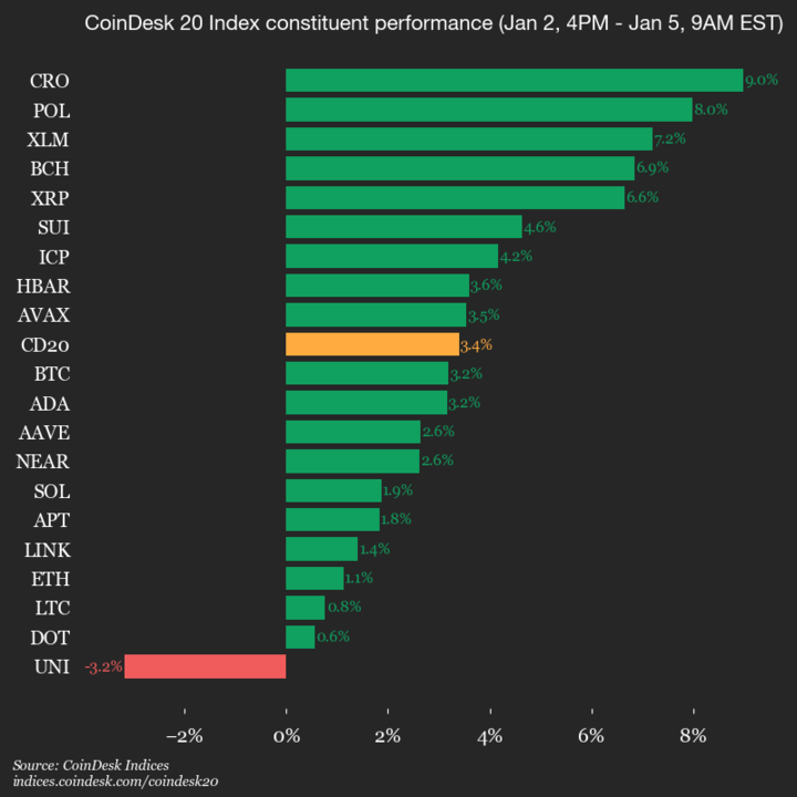 CoinDesk Indices presents its daily market update, highlighting the performance of leaders and laggards in the CoinDesk 20 Index.