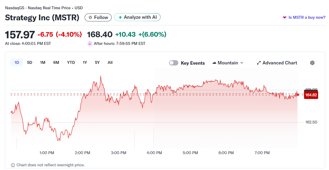 MSTR fell about 4% on Tuesday to close near $158, leaving the stock roughly 67% below its July 2025 peak of $434, per Yahoo Finance. The stock is up about 4% so far this year.