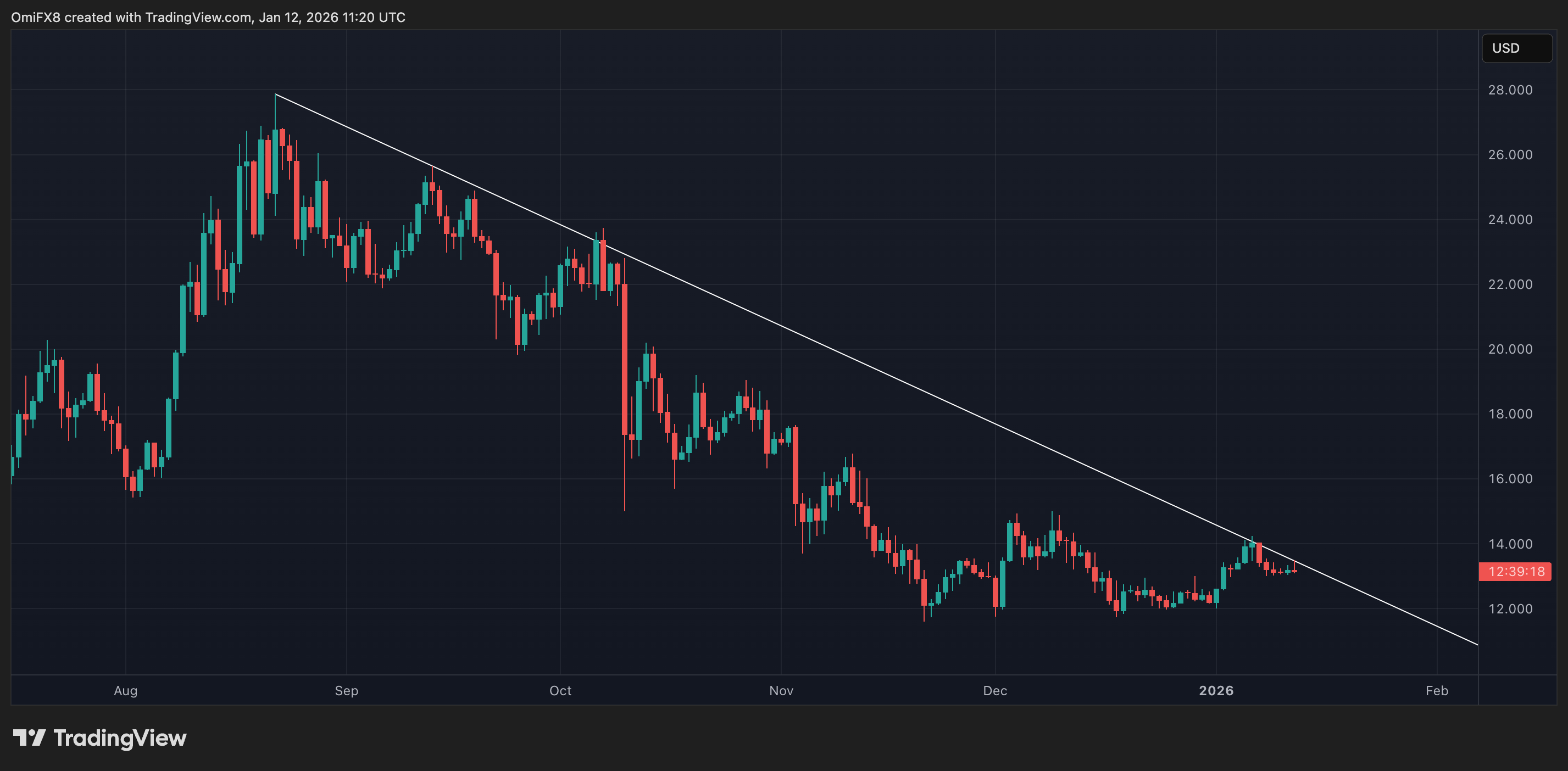 - A move past this trendline would qualify as a bullish breakout, potentially driving more demand for the token.