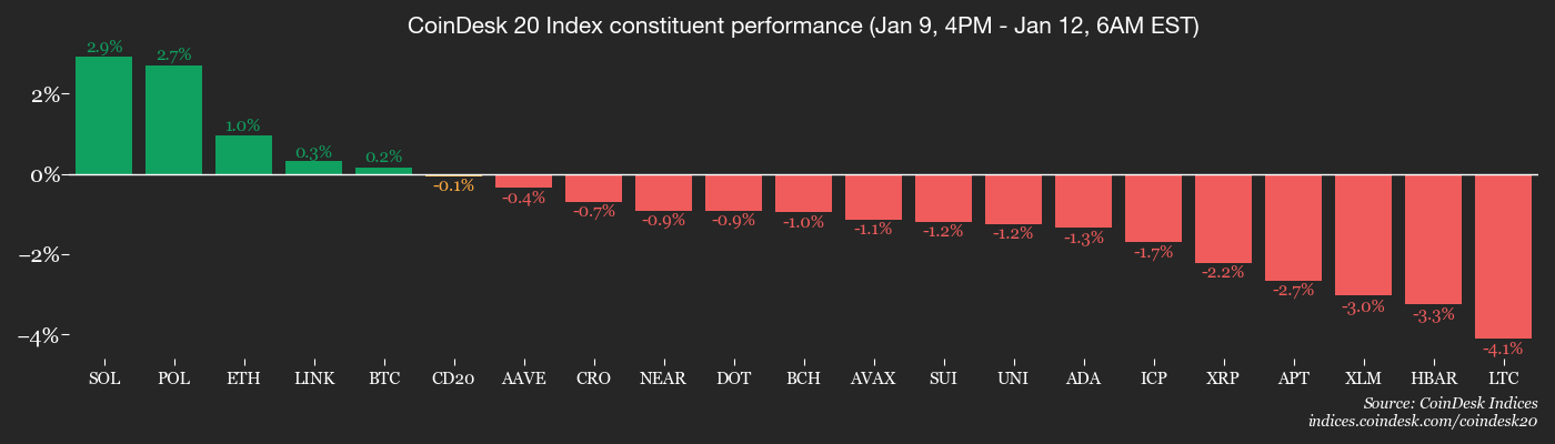 The rare divergence between crypto and equities was short-lived. Bitcoin fell back to $90,500 during the European hours and the broader crypto market also retreated. Privacy-focused monero pulled back from the record high of $598 to $571, still up 15% over 24 hours. CC, RENDER, and ZEC are other standout coins, gaining 4%-5% over the past 24 hours.